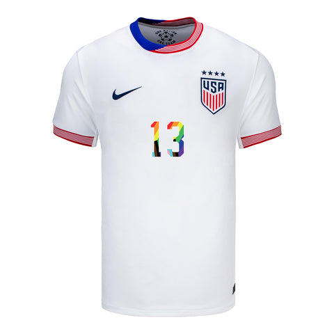 Men’s Nike USWNT 2024 Pride-Themed Home Morgan 13 Stadium Jersey