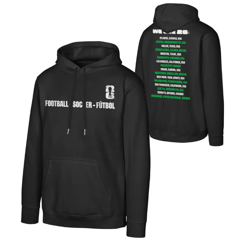 2026 World Cup Host Cities Futbol Black Hoodie – Unisex